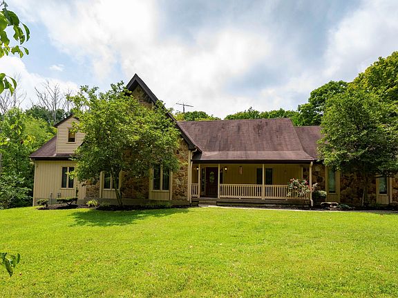 Looking for a secluded home in the woods in Jefferson County? This custom brick home on 24 acres is only 5 minutes to 265. This hard to find quality home has 3065 sq.ft. with an add'l 2006 sq. ft. finished in the walkout basement. There are 3 bedrooms, 4 full baths, a loft on the second floor overlooking a large great room with stone fireplace, 2 car attached garage, covered porches, patio, big deck and large outbuilding. The basement is set up for entertaining with engineered hardwood flooring, wet bar, and theatre room. Other features include first floor laundry with mud room off garage, kitchen skylights, whole house fan, central vac, new HVAC in 2016 and an optional efficient wood burning whole house furnace, Whole house has been wired with CAT5.