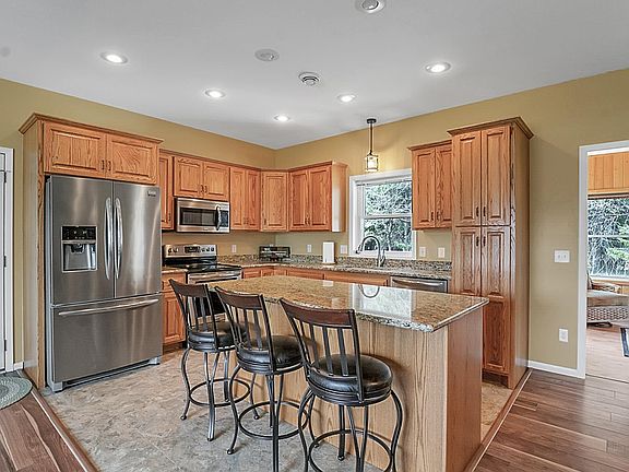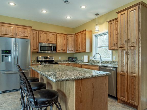 Patio homes like this don't come along often! This stunning 2 bedroom, 2 bathroom home with a spacious 2+ car garage is full of thoughtful upgrades and is ready for you to move in and enjoy. Step inside to a bright, open-concept layout, featuring 9 foot ceilings throughout, that creates an airy, welcoming feel. The gorgeous kitchen features custom oak cabinetry, granite countertops, a 6-foot center island, and stainless steel appliances. The adjacent dining area includes a large walk-in pantry, offering excellent storage space. You’ll fall in love with the sunroom/four-season porch, a perfect spot to relax or entertain year-round. In-floor hot water radiant heat, with three separate zones, will ensure you're comfortable no matter the season. The primary bedroom is your private retreat, boasting an en suite bathroom with a whirlpool tub, custom tile and oak cabinets, and a spacious walk-in closet. A cinder block storm shelter is in the heated garage for added safety, and the garage drain will ensure your floor stays nice and dry. Outside, pride of ownership shines in the lush landscaping, maintained with ease thanks to the in-ground sprinkler system fed by a cost-saving sandpoint well. Enjoy tranquility, while enjoying the peaceful scenery on your backyard cobblestone patio, or savor a cup of coffee on your front cobblestone patio as the sun rises. Privacy is ensured by a forest line along the backyard property line. Nestled on a peaceful cul-de-sac, in a vibrant neighborhood, recreational opportunities abound where you may walk, bike or take a short drive to the Mississippi River access where you can fish, boat and more! Don’t miss out on this one, homes like this move quickly!