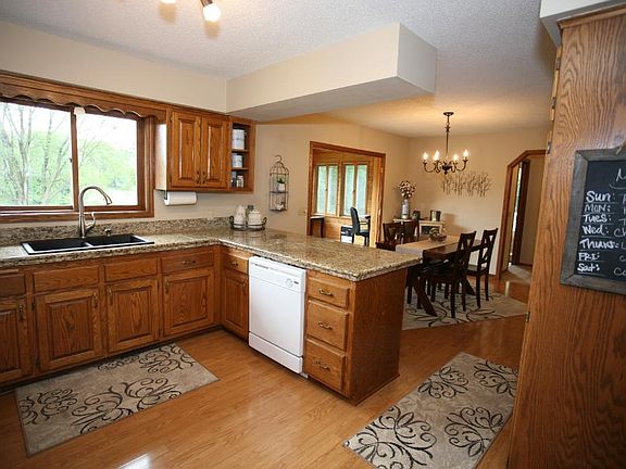 Class and style abound in this walkout rambler, nestled among trees and beautiful rolling topography. Owners suite features dbl closets, bathroom complete with Jacuzzi tub & separate walk-in shower. Open kitchen concept leads to dining room and 4 season porch that lets the natural light shine through. Recently remodeled bsmt including 3/4 bath with in-floor heat & entertainment area w/counter & sliding glass doors that lead to a shaded patio. Corner lot provides ease of access w/2 driveways.