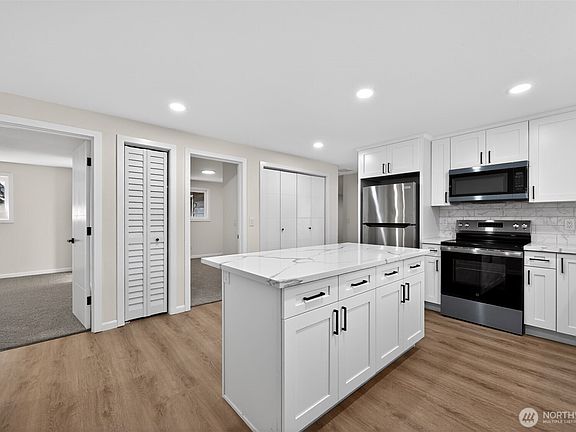 Beautifully updated 4-bedroom, 2-bath home in the desirable Benson Hill community offers 2,270 sq ft of flexible living space on a generous .24-acre lot. This thoughtfully refreshed residence features stylish vinyl plank flooring, a cozy fireplace, and a functional one-story layout ideal for modern living. The spacious kitchen comes equipped with stainless appliances and opens to inviting living and dining areas perfect for entertaining. A private primary suite and additional well-appointed bedrooms provide comfort and versatility for guests or home office needs. Enjoy a level lot with garden space, territorial views, and ample outdoor potential. Attached 2-car garage, forced-air heat, and no HOA. Conveniently located near shopping, schools, and easy access to Hwy 167—this move-in-ready home is a fantastic Renton opportunity.