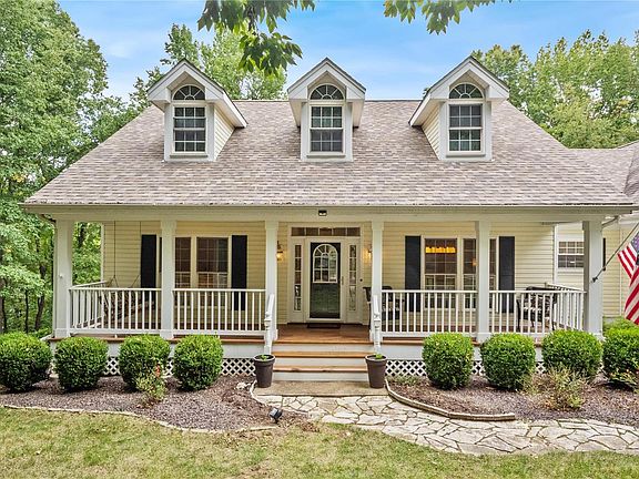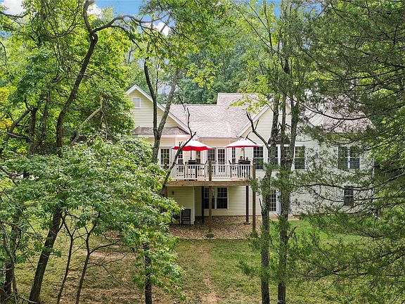 Great room ranch custom designed & built by Seller on 3.70 acres in NE Wildwood adjoining Chesterfield. Standalone parcel, not part of the subdivision or HOA. Very private, 350 feet off the road. Lots of nice architectural detail. 4 bed 3 full bath, plus office. 3272 fin sq ft. New high-grade luxury plank vinyl flooring throughout main living area except bdrms & bths. Open floor plan vaulted GR. 2 gas log fireplaces. Side entry, oversized 24 x 24, 2 car garage with 18 foot door. Cedar front porch and deck. Kitchen with custom white cabinets with crown molding, wing peninsula, granite counters, SS appliances & glass backsplash. Walk out to grade finished LL includes stained concrete L-shaped Fam Rm with 6 seat wet bar. 4th bed, 17 x 16 office with wall of lighted closets. Certainteed double hung vinyl tilt windows. Flagstone walk. Garage is dry walled & painted. Roof 2015 HVAC 2019, well pump 2022, septic has 500 feet of drainfield. OWNER/AGENT COOL: 14 SEER+