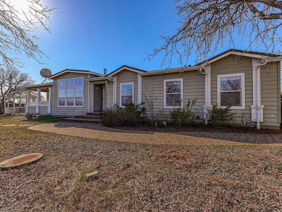 You will love the views as you drive to and from this property nestled on 10.2 acres! This Large triple wide manufactured home has many features such as a walk in pantry, kitchen island open to the living room, 2 sided fireplace, garden tub, tile flooring, laundry room, 1/2 bath, large rooms, high ceilings, covered deck, lots of patio area, gazebo, viewing deck, Tesla Solar, and an oversized 2 car detached garage. There is an area to build a huge shop below the house. Amazing views of the surrounding mountains.