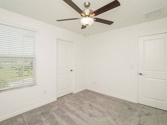 If you're looking for space, come see this five-bedroom rental home with two and a half bathrooms in Lutz, FL. Your tour of this two-story property starts in the open-plan living room, which has a lighted ceiling fan to supplement the home's central HVAC as you gather with family and friends. A center island helps to maximize counter space in the kitchen, and you'll love having modern stainless steel appliances and an above-the-range microwave for convenience. A spacious loft awaits you upstairs. Past that, you'll see the main bedroom suite, which has cozy carpeting, a lighted ceiling fan, and a large walk-in closet. The suite's private bathroom includes two sinks and a walk-in shower. Book your self-guided tour today!