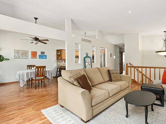 Welcome home to this move-in ready 3 bedroom, 2 bath, end unit townhome. The open floor plan is inviting and has fantastic flow, with the main living space and 2 bedrooms upstairs and an additional bedroom and family room in the walk out lower level. A new roof, furnace and air conditioner make this home completely worry free. And don’t miss the new range, microwave, sliding glass door and updated lower level. The large side yard of this property is HOA maintained, but the space is owned by this end unit, providing tons of outdoor space and privacy! The location is ideal, with walkable access to schools, the community center, walking trails, and Round Lake Park.
