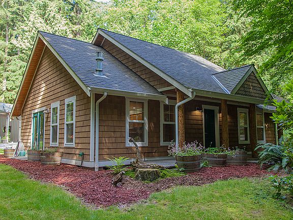 Space, beauty & privacy! Charming cedar cottage nestled along East Colony Creek on lush 7.28 acres, adjacent to Blanchard/Chuckanut recreation area w/trails of hiking & biking. 2 BR, 2 BA with 1036 sq ft of living space, cozy fireplace & enticing bamboo floors. Custom crafted studio/loft is perfect for additional living quarters or use as art studio or as you wish. Detached heated shop for all your tools & toys. RV parking too. One of a kind property midway between Bellingham & Burlington!