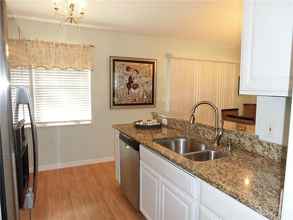Bright and open 3/2/2 split floor plan offers vaulted ceilings in living area and custom built-in wall unit. Kitchen with granite countertops, stainless appliances and breakfast bar. Large dining room. Master has his/hers closets. Laminate and tile flooring throughout. Neutral colors. Private screened porch overlooks beautiful fenced lot. No HOA. Much more...move-in ready!