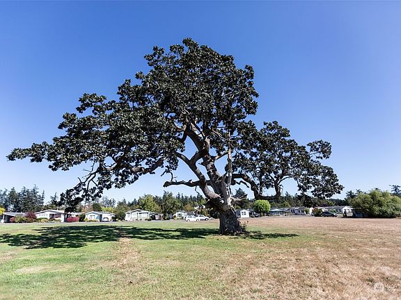 Affordable San Juan Island home at The Oaks, a fabulous Manufactured Home Community (application required). Home is on leased land. 1404 sq feet. 3 bedroom, 2 full baths. Newer appliances in 2020-21. New forced air furnace October 2021, new custom blinds 2022. 560 sq foot 2 car detached insulated garage w/heated shop/storage space plus an additional 448 sq ft carport. Extra wide parking pad area for vehicles. 6-foot-tall privacy deck (478 sq feet) on entire back of house. Fully fenced back yard is great for pet(s). Home faces due West for that warm afternoon/evening sunshine & sunsets. Only home in The Oaks that has a large garage w/shop & a carport with additional parking pad. Large sunny community park across the street to relax & enjoy.