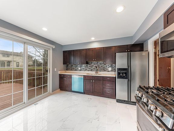 Spacious beautiful rehab 4 bedroom 2 bath raised ranch style home. Brand new soft close kitchen cabinets, Quartz counter tops with a new sink and STAINLESS STEEL appliances. Brand new 2 baths, tub and vanity with ceramic floor - 2020. Stunning refinished hardwood floors on the main level. Two tiered deck overlooks a large backyard with wooden fence. Whole home has freshly painted interior and exterior -2020. The lower level has new Vinyl flooring 2019. NEW LED Recessed lights all over the entire home 2019. Furnace and air conditioner 2019. New Water heater and roof 2018. Highly ranked school in the area (Hoffman Estates High School) and near Hoffman Estates Library. Low Real Estate tax and no HOA. Close to Hwy I-90 and I-290.Woodfield mall and many restaurants nearby. Move-in ready! You will not want to miss out on this one of a kind home!