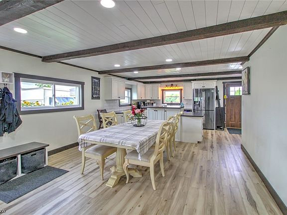 Discover the epitome of country living in this meticulously rebuilt ranch home nestled on over an acre of scenic land. Every inch has been thoughtfully revitalized, starting from the studs. The interior boasts a stunning transformation with new drywall, , plumbing, electric, closed cell foam insulation, hardwood trim, LED lighting and interior and exterior doors. Revel in the abundance of natural light that floods through the triple pane windows. The luxurious LVP flooring adds elegance to every step you take, while custom cabinetry throughout the home provides ample storage space.Indulge in relaxation in the full bathrooms, each featuring a jetted tub and tile floors. The laundry area is conveniently located off the kitchen , and a pantry ensures all your essentials are within reach. The maintenance-free metal roof provides durability and peace of mind,for years to come. The custom pine siding showcases the rustic charm of the countryside.Don't miss out on this virtually new home.