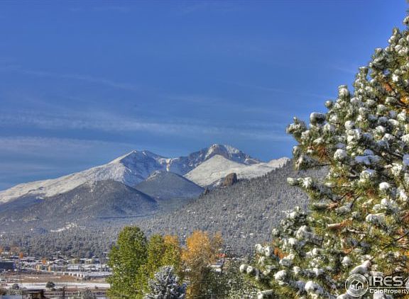 Big Views of Longs Peak, Continental Divide and Lake Estes. Open floor plan, large living room with wood fireplace, walkout to deck with 180 degree views, dining and spacious kitchen. Lower level with 2 large bedrooms, walk in closet, full bath, laundry room/mud room connected to the nice sized garage. Short term and long term rentals allowed. Well maintained home with end of the road style privacy. Home has rental permit.