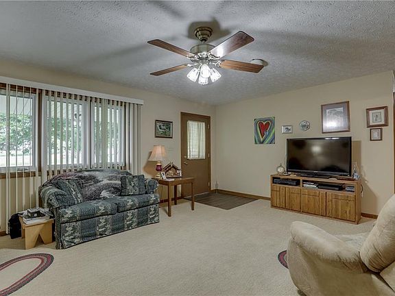 This beautiful ranch style home features a walk-out basement, stunning 4 seasons room w/triple pane windows, beautiful hardwood floors in Kitchen, geo-thermal heating and cooling, saltwater swimming pool, pole barn with running water and over 8 in of insulation in walls! Mature trees and landscaping over 1.5 acres! 2 private wells.