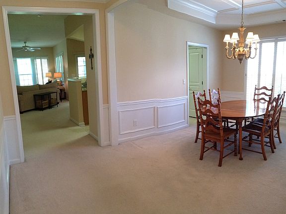 -Stone and Siding home on private culdesac, fenced lot adjoins undisturbed wooded area - Covered front entry - Offering 2 Bedrooms/2 Full Bathrooms/2 Car Garage - Welcoming hardwood Foyer, detailed mouldings, 9' ceilings - French doors lead to Living Room or perfect Study - Banquet-sized Dining Room with coffered ceiling, wainscot - Wonderful gourmet Kitchen with granite counters, stained cabinets, tiled backsplash, Breakfast Area, pantry - Fireside Family Room with granite hearth, gas starter/logs wall of windows overlooking lush yard - Comfortable Screened Porch overlooking woods - Romantic coffered Master Suite with dual sinks/vanities, oversized shower, generous closet - Large Secondary Bathroom with Full Bath/Hall Bath - Extras include Plantation shutters, irrigation - Active adult community with pool and clubhouse amenities plus lawn and garbage pickup included in fees - Close to shopping, restaurants, businesses, major highway
