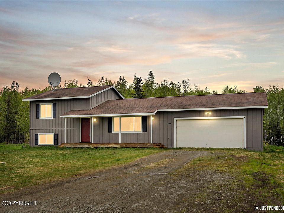 Charming tri-level home nestled just outside the heart of Wasilla on 5.64 acres of flat, lush land. Situated in a peaceful neighborhood within walking distance to Snowshoe Elementary. Perfect horse property with paddock and large shed (12x15') that has plenty of roof overhang for dry storage. Upstairs has ensuite primary bedroom, second bedroom + full bath. Primary's bath has been recently...updated and main full bath was just remodeled with new tub + surround, toilet, vanity, lighting and flooring. Lower level has third bedroom, large laundry room and bonus room - great space for home office, gym, TV/movie room, you name it. New slider in dining room for easy access to backyard. Plenty of room to park all of your toys. This property offers the perfect blend of Alaskan living with tranquil suburban acreage just minutes away from bustling urban amenities. Lot is subdividable. Great commuter location.