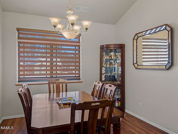 Looking for a Flagstaff residence that offers a seamless blend of character and modern comfort in an unbeatable location? This custom-built, Boulder Pointe gem -- protected by a new roof with hail-resistant shingles and a new Vivint security system -- has three features not often found in this price range: a triple garage, central air conditioning, and a recirculating hot water system.The interior of the residence is adorned by contemporary, new luxury vinyl plank flooring and transitional window shades -- in every room. All the interior lighting is LED. The vaulted ceilings in the entry, living room, dining room, kitchen, and primary bedroom and bath evoke a sense of openness. The living room also has two skylights, and offers the warm ambiance of a fireplace with gas log set (on a timer). The dining room is ideal for formal as well as casual meals. The eat-in kitchen has angled walls, chic granite counters, handsome cabinetry, a closet pantry, stainless