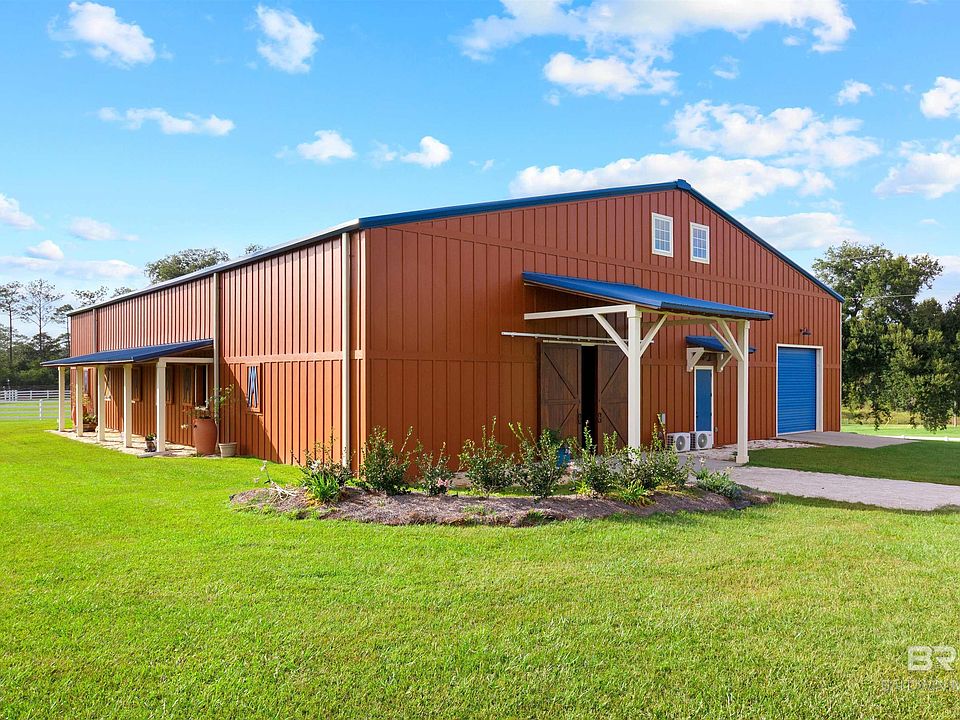 Nestled on 20 pristine acres, this one-of-a-kind estate beautifully pairs a meticulously crafted 6,500 sq ft Gold Fortified barn (completed in 2023) with a luxurious 4,400 sq ft residence. The barn is designed for serious equestrian use, featuring 4 completed stalls & 4 stalls with sand/pea gravel and mats, a climate-controlled Tack Room, and a dedicated Feed Room, plus spaces for wood storage and a golf bay. Upstairs, a game room with a pool table and an infrared sauna provides resort-like recreation, while French doors lead to a deck that frames a mature oak tree and expansive pasture. The home offers four oversized bedrooms, each with an en-suite bath, ensuring comfort and privacy for guests or family. The remodeled kitchen, equipped with Viking appliances and a Bosch dishwasher, invites culinary creativity and easy entertaining. Sunlight streams through the back of the house, highlighting a saltwater pool and a pizza oven for outdoor gatherings. The living room centers on a stone wood-burning fireplace, and the primary suite occupies its own wing with a spacious 19x14 office and private porch via French doors. This tranquil property delivers a rare blend of luxury, versatility, and rural serenity—ideal for equestrian enthusiasts, entertainers, and those seeking a private retreat. Buyer to verify all information during due diligence.