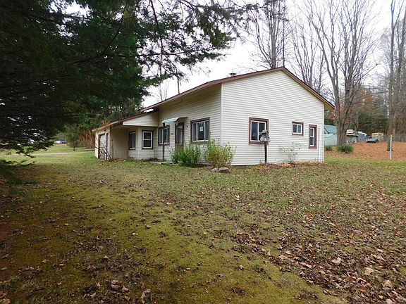 Convenient location, close to public boat launch, hiking trails, public parking, and state forest land. This space has everything you need. Three acres, 30x40 pole barn with electric and concrete floors, attached garage, two bedrooms and a large living space. With some TLC this house could shine as a home once again.