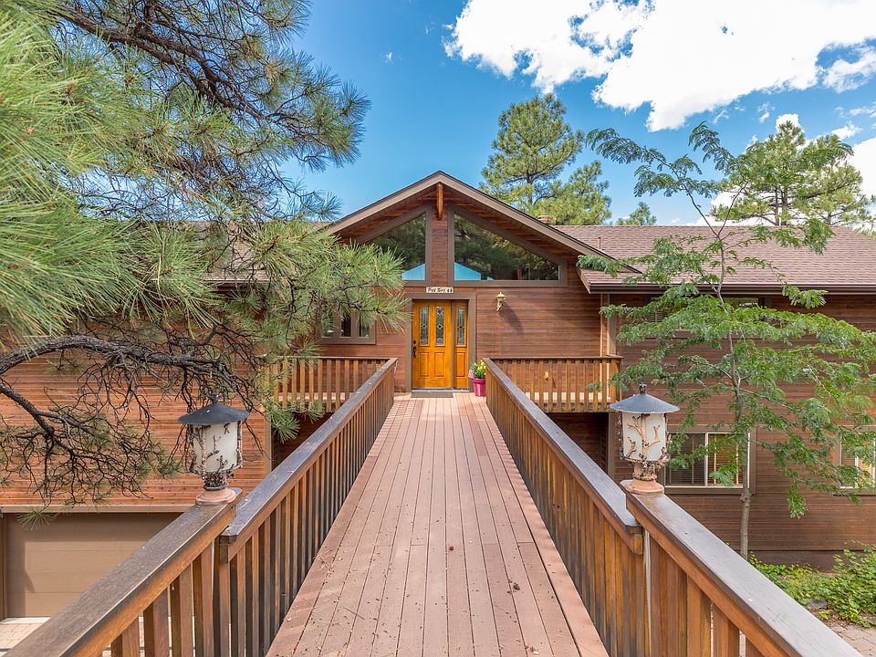 Tremendous views of the Munds park forested hillsides, Lake O'Dell, golf course, canyons of Sedona and the night lights of Jerome. VIEWS, VIEWS, VIEWS. Open concept with soaring ceilings, walls of windows, gorgeous wood floors and a grand kitchen with upgraded cabinetry, granite counters, stainless...you name it this has it. Two fireplaces, a gas propane in the master. Master suite has on-suite bath with walk-in snail shower, dual sinks and private lavatory. Huge game room with pool table and granite wet bar down stairs plus two bedrooms. Wrap decks on both levels. Paver driveway leads to two car garage with loft for work station. Grandiose Home!