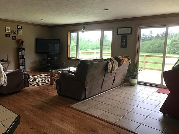 Quality Modular ranch style house on 10 country acres! Home features an open living room/dining room area just off the kitchen with hardwood floors and large windows to see nature at its best. Living room also has patio doors that lead out to a large open deck ( new 2017) on the back of the house. This deck is perfect for summer parties! There is laundry hookup in the main bathroom for easy access. Master bedroom has bathroom with garden tub and french doors. Don't forget this property includes a large 2 car garage with carport on the north side. If you are looking for something in the country, This home should meet ALL your needs