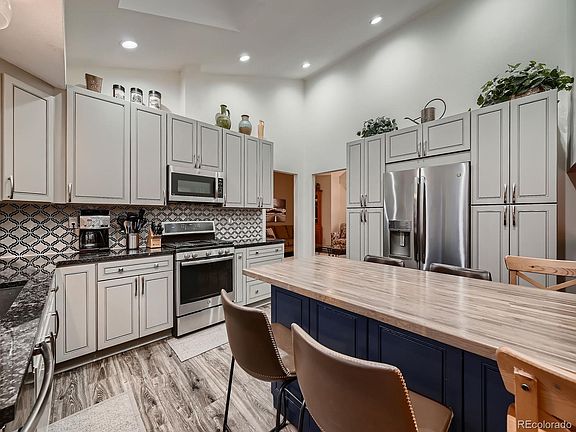 Welcome to Your Fully Updated Dream Home in the Coveted Lakeshore Community! This thoughtfully redesigned residence offers 5 spacious bedrooms, with 4 conveniently on one level, and a versatile 5th in the finished basement that's ideal for a mother-in-law suite, teen retreat, or guest space. Step inside to soaring ceilings and large picture windows that flood the home with natural light. At the front, formal living and dining rooms feature luxury LVP flooring and are perfect for hosting holidays and gatherings. The professionally designed chef's kitchen is a true showpiece, boasting custom two-tone cabinetry with elegant hardware, a butcher block island with seating, granite counters, custom backsplash, gas range, French door refrigerator, and an expanded window that brightens the space. With all appliances included, this home is move-in ready. The family room is warm and inviting, centered around a brick gas fireplace with a hearth and easy access to the backyard. The primary suite offers vaulted ceilings and a spa-like en-suite bath with a quartz vanity, framed mirror, designer lighting, and a walk-in shower with a bench, custom tile work, tiled Schluter shower pan, and frameless glass door. A built-in coffee bar or extra storage adds convenience. Three additional bedrooms share a beautifully updated bath with a custom vanity and designer finishes. The finished basement provides a second family room, playroom, home office, or home theater, plus a spacious bedroom and private full bath. Across the street from the neighborhood pool, enjoy a swim, return home for a snack, and head right back! Spend sunny Colorado days on the expanded deck and in the backyard with space for a garden. Lakeshore offers a private lake, top-rated schools within walking distance, and scenic trails. Don’t miss this exceptional home!