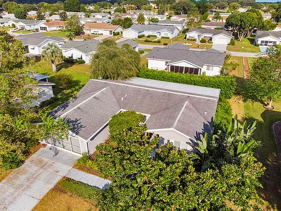55+ Gated Golf Course Community just north of The Villages. This 3/2/2 HOLLY has 1,450 sq ft of living space under heat and air plus an additional 528 sf of lanai space in two lanais. There is also a golf cart garage! Once upon a time, a master gardner tended to the yard of this home. Time has taken a toll. There is much potential here. The 3rd bedroom can be a bedroom or family room. This diamond in the rough awaits the perfect transformation! Volume ceilings! Neutral grays throughout. No washer. Being sold AS IS. ROOF 2011