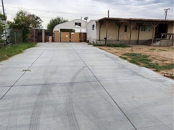 Are you looking for the perfect starter home or wanting to invest in a great rental property? This home meets all of those criteria. And you won't find a better price for all it has to offer! The home is 2 bedrooms, 2 bathrooms and is situated on a large 0.32 acre lot. Special features include a large open ended quonset hut that provides tons of covered parking and storage for your RV, boat, or other vehicles and recreational toys; a wide open back yard that is a blank canvas and has plenty of room for a pool, outdoor kitchen, or anything else you can dream up. As you enter the home, you'll find a tiled entryway that steps down into a large living room and overlooks the front yard through two large windows. Just off the living room is a sizeable kitchen, that opens up to a kitchenette on one end, and a separate dining room on the other. The master bedroom has an ensuite with tub/shower combination, double sinks, and separate vanity. The home utilizes central air and heat, and also features a wall-mounted evaporative cooler. You won't want to miss out on this opportunity to own your very own home or real estate investment property! Many more pictures coming soon!!! The property is being sold in AS-IS condition. Buyer to verify all information during the due diligence period.