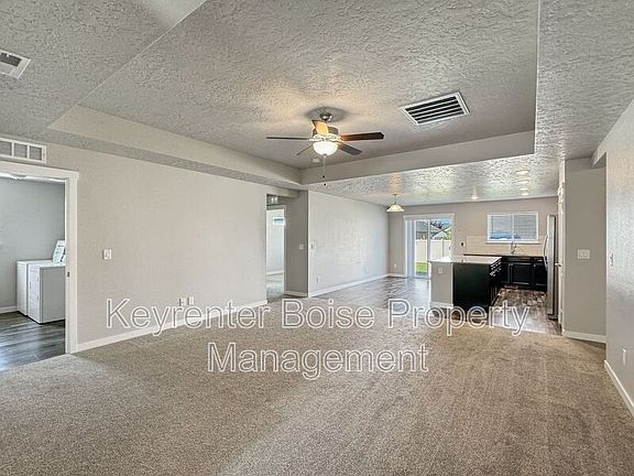 Welcome to this exquisite Energy Star Certified home, perfect for those seeking comfort and modern amenities. This pet-friendly residence, accommodating small dogs under 25 pounds, features central heating and air conditioning, complemented by Nest thermostats and remote-controlled lighting and fans. The open-concept layout boasts high and vaulted ceilings, enhancing the spacious feel of the luxury vinyl plank wood flooring and hardwood kitchen cabinets. The kitchen is a culinary delight, equipped with stainless steel appliances, granite countertops, a deep sink, a walk-in pantry, and a convenient breakfast bar. The master bedroom includes an ensuite bathroom with stylish tile finishes and a walk-in closet, while the laundry room is fitted with a washer and dryer for your convenience. Double glass doors lead to a large, fully fenced backyard, ideal for outdoor gatherings on the patio or relaxing on the front porch. The attached 2-car garage offers ample storage space. Nestled in a community with fantastic amenities, you'll have access to a neighborhood park, a swimming pool, guest parking, a dog park, a clubhouse, and a fitness center, all maintained by the HOA. This home truly offers a perfect blend of luxury, comfort, and convenience. *The Basics: Landscaping: Tenant arranges and pays for all landscape. Lease Term: 12-month initial lease term. Utilities Included with Rent: NONE, Tenant responsible for all utilities. Pets Policy: Cats and Small Dogs considered with additional screening required; $50 monthly pet rent, $250 one-time pet fee, and $250 additional security deposit per pet. All pets & animals MUST be registered and approved during the application process. *IMPORTANT THINGS YOU SHOULD KNOW: This is a No Smoking rental property. Application processing time is 2-3 business days. Please review Keyrenter's Application Criteria prior to applying. All household members over the age of 18 must complete an application. No sublease/Airbnb etc. Other restrictions may apply per lease contract. Security Deposit: Equal to one month rent + $200. All Keyrenter Boise residents are enrolled in the Resident Benefits Package (RBP) for $50/month which includes renters insurance, HVAC air filter delivery (for applicable properties), pest control service, credit building to help boost your credit score with timely rent payments, $1M Identity Protection, our best-in-class resident rewards program, home buying assistance, and more! More details upon application. Other terms and conditions may apply. All information including advertised rent and other charges are deemed reliable but not guaranteed and are subject to change. Amenities: Dog Friendly (small dogs under 25 pounds), Central Heat & Air Conditioning, Energy Star Certified Home, Open Concept, High/Vaulted Ceilings, Remote-controlled lighting/fans, Nest Thermostats, Ceiling Fans, Ring (or similar) Doorbell, Luxury Vinyl Plank Wood Flooring, Carpet, Hardwood Kitchen Cabinets, Stainless Steel Appliances, Granite Countertops, Kitchen Island, Deep Kitchen Sink, Walk-In Pantry, Breakfast Bar, Master Bedroom Ensuite, Walk-In Closet, Bathroom Tile, Tile Backsplash, Laundry Room, Washer/Dryer, Double Glass Doors Opening to Backyard, Large Back Yard, Fully Fenced Backyard, Patio, Front Porch, Attached 2-Car Garage, Neighborhood Park w/in Walking Distance, HOA Community, Common Area Swimming Pool, Guest Parking, Dog Park, Club House, Fitness Center