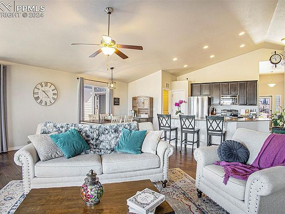 Welcome home to this 3,000+ SF RANCH BACKING TO GREENSPACE with FINISHED WALKOUT BASEMENT and MOUNTAIN VIEWS! Built in 2015, this 5-BEDROOM + LARGE STUDY home has been WELL MAINTAINED and is move-in ready. Enjoy some extra peace of mind with NEW ROOF, NEW GUTTERS and FRESH EXTERIOR PAINT in 2024, AIR CONDITIONING INSTALLED 2021, RADON MITIGATION INSTALLED 2020…and the NEW EXPANDED DECK and outdoor area to enjoy Colorado's four seasons! You’ll enjoy pulling into your driveway and looking south, past the NEIGHBORHOOD PARK, to see snow-covered mountains. The roomy 3-CAR GARAGE is an upgrade over other homes in the neighborhood. Walking through the front door (or garage), you are welcomed into an OPEN CONCEPT main floor with VAULTED CEILINGS. One corner makes for an excellent reading nook with much better views than you can get from most coffee shops. Kitchen offers STAINLESS STEEL APPLIANCES, STONE COUNTERTOPS, AND LARGE ISLAND. The primary bedroom, laundry, and two more bedrooms are located on the main floor while the basement offers room to spread out with 2 additional bedrooms, a large study, full bathroom, storage room, MASSIVE GAME ROOM, and slider door access to the backyard. The home is located in AWARD-WINNING LEWIS-PALMER SCHOOL DISTRICT 38. The current owners love the TIGHT-KNIT, WELCOMING COMMUNITY and the well-attended NEIGHBORHOOD EVENTS throughout the year. Easily COMMUTE TO COLORADO SPRINGS OR DENVER. This home is worth seeing. You might fall in love with everything it has to offer!