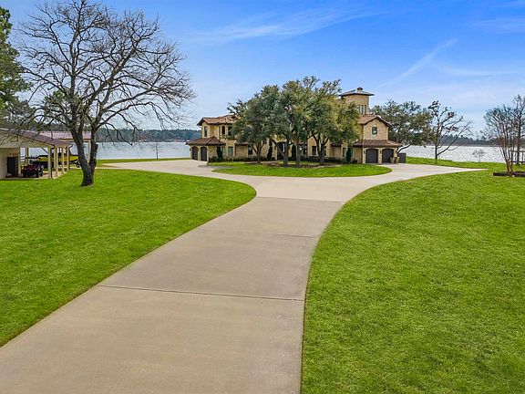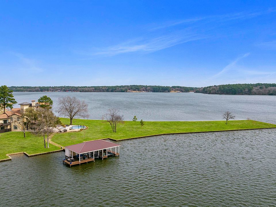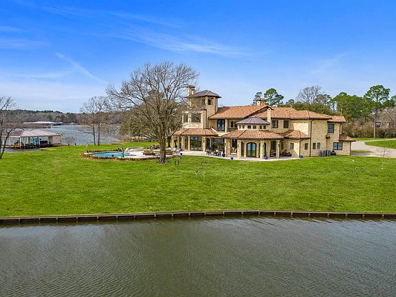 Exquisite private gated lakefront estate perfectly situated on 3.949 acres with picturesque open water views of beautiful Lake Tyler. This pristine completely remodeled and updated 8946 sq ft architectural masterpiece is perfect for entertaining. The thoughtfully designed open floor plan flows seamlessly and features 6 bedrooms, 4 1/2 baths, theatre room with kitchen, elevator, wet bar, exercise room, game room, wine cellar, gun room, 4 car garage with Tesla charger, third floor study that leads to the fourth floor crows nest with beautiful covered patio and panoramic open water views of the lake. The home also boast a gourmet kitchen fit for a chef complete with wolf and subzero appliances, large walk in pantry, waterstone faucets, beverage drawers, ice maker, marble countertops, breakfast and keeping room with beautiful oversized stone fireplace perfect for the family to gather around. The large primary suite is located on the first floor complete with sitting room with stunning architectural details, fireplace and floor to ceiling windows that capture incredible views of the water which makes for the ideal spot to relax. The spa like master bath consist of dual entry shower, his and her separate vanities, separate 2 story walk in closets, garden tub and separate lavatories. A resort style backyard oasis consist of a private point which allows for helicopter landing with 1160 feet of new .06 treated wooden bulkhead, new boathouse with boat slip and jet ski lift, gorgeous pool and spa, stone fire pit, outdoor kitchen, workshop with new boat carport and all new lush landscaping makes this property the ideal home for entertaining and a place that is sure to welcome family and friends for years to come. Call today for your private showing.