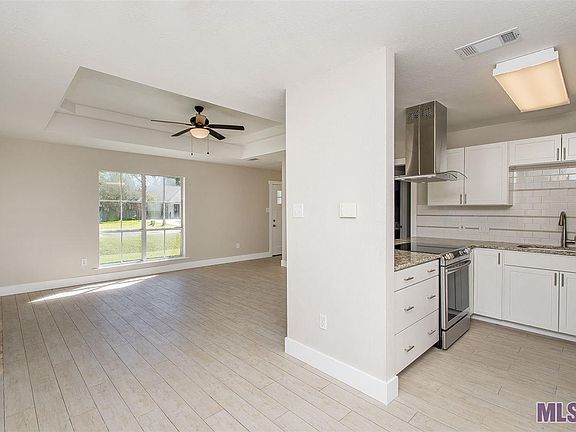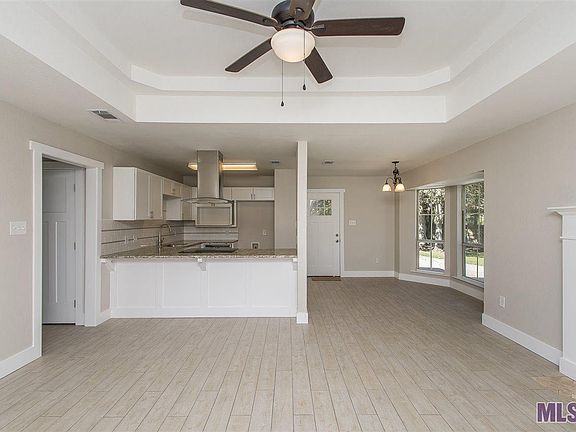Beautiful, completely renovated home located in popular section of rural Baton Rouge. Open floor plan with high-end finishes and neutral colors throughout. Remodeled kitchen with all new appliances has ample counter space with bar seating and separate dining area. Generous sized den with vaulted ceiling and wood-burning fireplace. Master bedroom and bath are large with a nice walk-in closet. Pretty ceramic tile throughout living areas and new carpet in bedrooms. Home is move-in ready with security/fire system. Large, fenced-in backyard with rear carport and storage area. Complete remodel after minimal flooding (6")August 2016. Flood and homeowners policy transferable (contact agent for details).