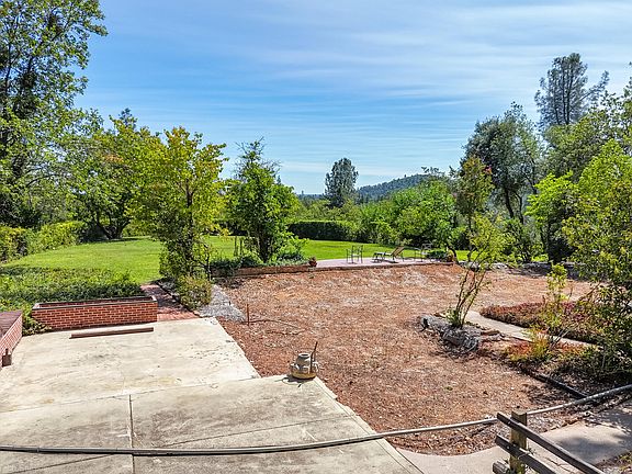 The front yard consists of a 6,000 sq. ft. lawn surrounded by a hedge and more trees. The vista is one of green tree tops all the way to Redding. At night enjoy a "Montana Big Sky" view of the stars and the twinkling lights of Redding in the background. On one side of the lawn towers a huge avocado tree that some years yields more than 200 fruits and is said to be the most northerly avocado tree in the Western United States. The property has @ 20 varieties of fruit trees/grape vines/and ornamental bushes. An orchard ladder and extendable pole - scoop/hook are included. There is a 12 x 12 ft. walk in concrete underground cellar with shelving under the guest house for your jars or wine bottles. There is a garden shed close to the house with plenty of space.