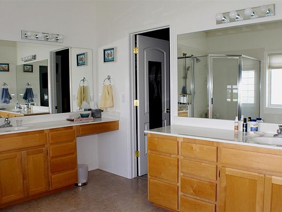 Amazing custom home with nearly 3700 SF on 1 level! Slab granite counters, Hardwood & tile flooring, 2 fireplaces, Built-In Book cases, 2 master suites and Jack-N-Jill Bedroom/Bath Set-up! Covered patio on East side, hardi-plank siding, 30-yr roof, brick accents, fenced yard, irrigated pasture, RV parking, storage shed, room for shop and animals! Fruit trees, garden beds, close to Timberstone golf course. 2x6 Construction, HUGE master closet! No CC&R's, No HOA Dues. Luxurious Master Suite with patio access!