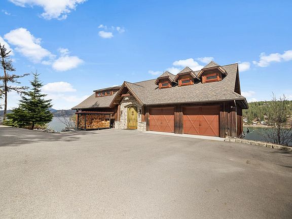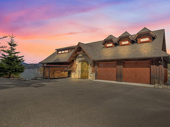One of finest properties on Lake Coeur d'Alene. This premier, custom home features over 5200ft.² of living space with another 2500 ft.² of deck space boasting stunning views of the lake, sunrises, and sunsets. 4 Bedrooms, 4 Bathrooms, including a lower level separate living space with full kitchen & additional garage and entry. The finishes on this home are unparalleled. Intrinsic detail and design, with local cut cedar siding and has easy summer and winter access. As you enter through the imported solid wood door, you can appreciate the rich, custom details throughout this home. A gourmet chef kitchen, great room with wood fireplace, turret lake view office, bunk room, and too many features to list. On .96 acres & 397 feet of lakefront. This home is on Neachan Bay, just below Gozzer Ranch, and one can look down the bay and across the lake at the Coeur d'Alene Resort golf course and Tubbs Hill. The bay is quiet with minimal waves; thus, no boat lift is needed with the deep-water dock