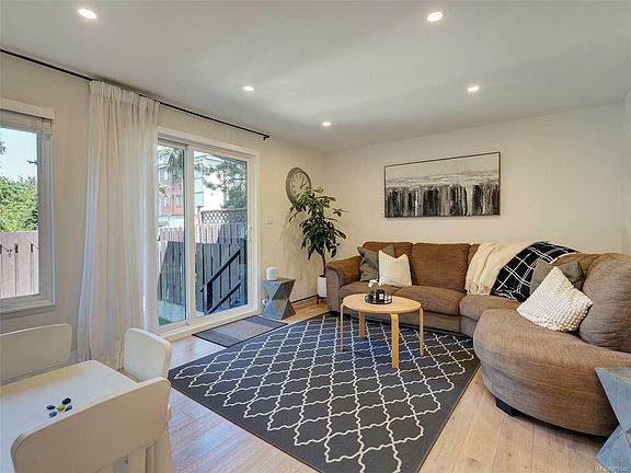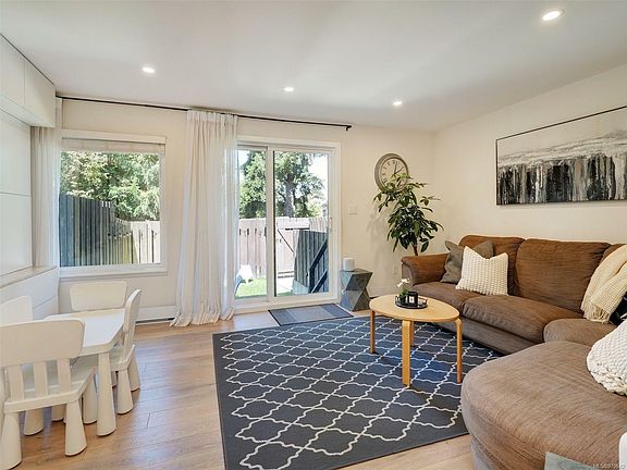 ACCEPTED OFFER IN PLACE - OPEN HOUSE CANCELLED. Tucked away at the end of a peaceful no-through street this spacious end unit features a brand new kitchen with sleek quartz countertops, stainless steel appliances, and plenty cabinetry, three fully updated bathrooms and new flooring throughout. The main level boasts a bright and airy kitchen, a 2-piece bath, and an open dining and living room with sliding doors leading to a large patio—perfect for family barbecues or a quiet evening under the stars. Upstairs, discover three generous bedrooms, including a large primary bedroom and a spacious 5 piece bath. The lower level offers a versatile living space, perfect as a family room or a fourth bedroom, complete with its own entrance and a full bath—ideal for guests, in-laws, or a home office Located within walking distance to all amenities with a convenient pathway leading to Richmond Road and the Royal Jubilee Hospital, this townhome offers both comfort and convenience in a prime location.