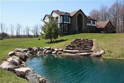 Gorgeous brick Tudor on 5 acre private lot and concrete drive with stocked 2M gallon lake;Kitchen with oak cabinets, granite counter tops; hardwood flooring;1st floor office/den;great room with see through fireplace to den;living room/dual staircase to 2nd floor. Full finished walk-out basement includes kitchen with oak cabinets, granite counter tops, bedroom and Spa bath and see through fireplace . Very Tranquil and Private setting. Recent structural updates include: New Roof and Chimney from roof up, New Energy Efficient Pella Windows and doors 1st and 2nd floors, Low/No Maintenance Covered Porch Addition, Updated and refinished basement including Spa Bath and in-law suite features including full kitchen with granite counter tops.