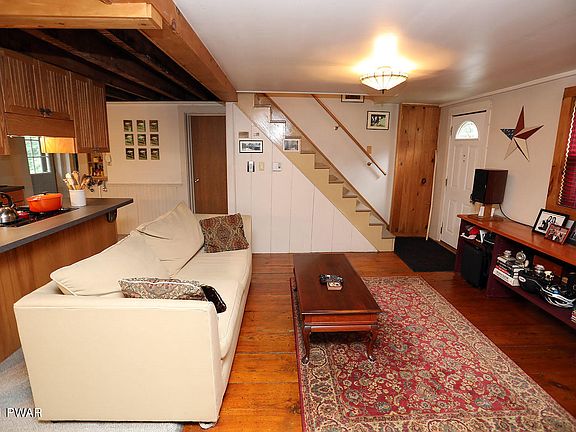Move right in to this streamfront renovated home that's close to everything! This 2BR/1.5 bath residence has a wraparound deck to enjoy listening to Beaverdam Creek. Or walk down the hill to the Delaware River access to launch your watercraft. Chic renovations have opened the main level kitchen, DR & living area. There's a full bath, laundry room & spacious pantry on main level. Woodstove chases the chill! Upstairs, find 2BR and a half bath. The wide plank floors are gorgeous and must be seen! Workbench in heated basement. Detached garage has electric & sliding barn doors. Terrific stonework sets off the home, and stately trees grace the yard. Just 5 minutes from Callicoon; 15 to Narrowsburg, NY and 25 min to Honesdale, PA for larger shops. Bethel Woods about 20 min for concerts.