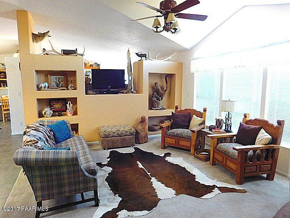 Grand Canyon Get-Away. Located just 1/2 hour from the Grand Canyon is this lovely 3 bd, 2 ba. 1728 sq. ft. m.f. home which has seldom been used. It is located on 37+ acres backing state land with panoramic views of the S. F. Peaks and Bill Williams Mtn. The floor plan is a flowing combination of kitchen, dining and study/office area. It offers a formal living area separated by a decorative wall with a family room on the other side & bordering the open kitchen area. A large window offers picturesque views of the spacious landscape to the north. Located just 1.5 miles from highway 64 it affords both convenience and privacy. Enjoy your own Grand Canyon Getaway. It is turn key ready with the option of most furnishings remaining.
