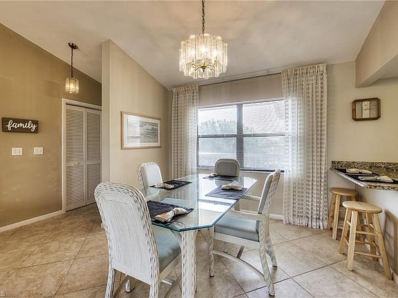 This "turn-key" condo will welcome you as soon as you step into the foyer. Spacious, bright and clean is the first impression, followed by an impressive view from the lanai of the lake and golf course. Such a refreshing and tranquil setting will be yours on the lanai, and sliding glass doors ensure privacy when needed. Hurricane shutters provide security. Cable and internet included. Features worth noting - a new roof, new carpets, vaulted ceilings, granite kitchen counters, newer appliances, appealing neutral colors, and all furnishings. The carport situated across from the community pool has an extra storage locker and is only steps away from the elevator. This small community is well known for its wonderfully active social club, friendly residents, and a nice clubhouse. Imperial Golf Course Estates is a premier golfing community, which also offers to those who wish, golf equity and social memberships to the main clubhouse. Imperial Golf Course Estates is well situated, just off Tamiami Trail, between Bonita Springs and North Naples which ensures quick access to beaches, great malls and restaurants, fitness clubs, theaters, and Artis Naples' Art Gallery and Symphony Hall.