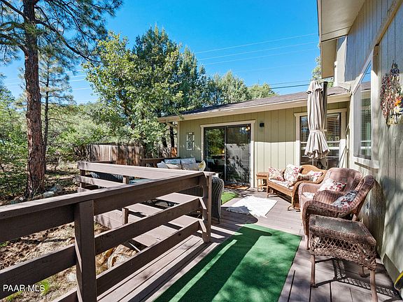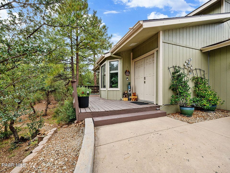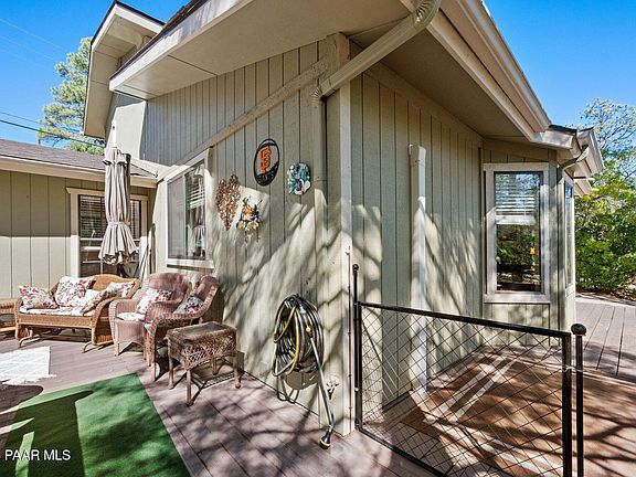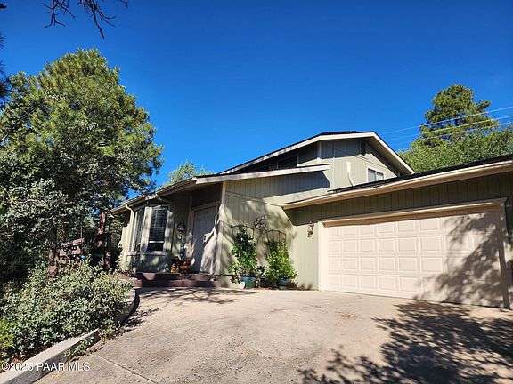 OWNED Solar-Powered Home on Large Fenced Lot - All electric home with an OWNED solar system. Minutes from Downtown PrescottThis is a unique opportunity to own a beautifully laid out solar-powered, SOLAR-OWNED home with multiple upgrades, and main floor living. This extraordinary 3 bedroom, 2.5 bath home features contemporary vinyl plank flooring, energy efficient AC/Heating splits, new conventional/air fryer oven and total yard drip irrigation. Situated on 2/3 of an acre in a fire-wise community, just 2.5 miles from downtown Prescott, it offers both privacy and convenience.The cozy primary bedroom is on the first floor, with two roomy walk in closets and sliders onto a spacious deck and enjoy the wilderness setting. Enjoy a double-sink bath with tub/shower combo plus full laundry for ultimate convenience. The kitchen features a breakfast bar that opens up to the dining area and vaulted-ceiling living room. Granite counter tops throughout add to the home's beauty. Upstairs, you'll find two spacious bedrooms--large enough for king beds--along with a full bath, ideal for kids or visiting guests.Outside, the fenced raised garden is perfect for growing your own vegetables, while the expansive fenced backyard provides a secure retreat for family, pets, and entertaining. Perhaps the home's best feature: solar panels that fully power the property, with the possibility of receiving a credit back from the power company each year. The house also includes four energy-efficient air conditioning splits, allowing for customized heating and cooling in individual rooms.Community amenities include a pool and tennis courts just a short walk away, and you're only minutes from the rodeo grounds, Capital Canyon Country Club, and all the dining, shopping, and entertainment downtown Prescott has to offer.Don't miss the chance to own this private, solar-powered gem--ready to be your forever home.