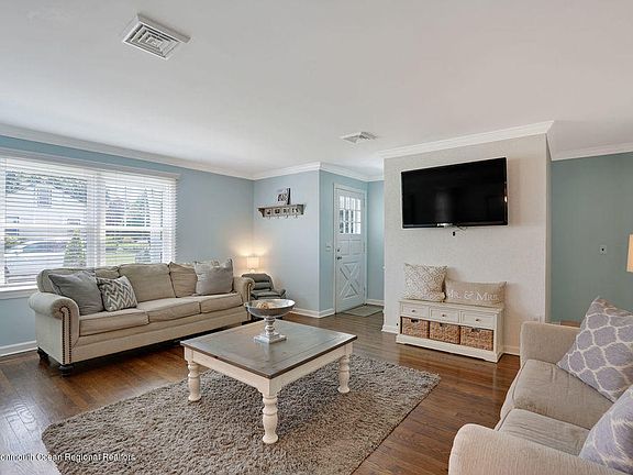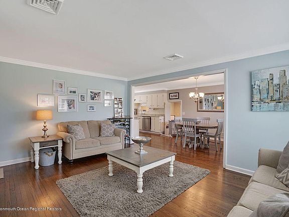 So much to love in this picture perfect ranch in Shark River Manor! This meticulously maintained home has been thoughtfully updated - home features updated bathrooms, gorgeous landscaping, crown molding throughout, newer appliances, hardwood floors, 2 zone heat and AC (AC branch new). Entertain guests in the 25' x 18' Great Room, just off the kitchen and dining room. Basement, attic and shed provide ample storage. Enjoy this quiet, well maintained street with easy access to major highways, the beach and shopping. If you need more than the current 1774 square feet of living space, finish the large walk up attic and enjoy a second floor!