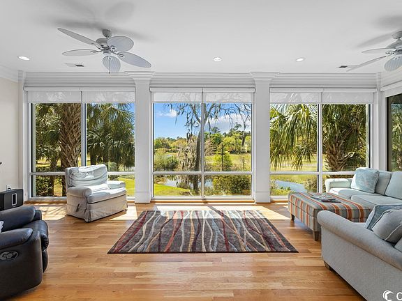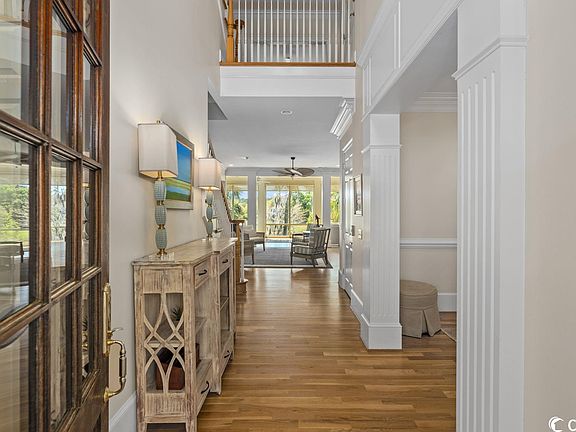 DeBordieu Colony - 7 bedroom, 6.5 bath, 5400 square foot home conveniently located a short golf cart ride to the Oceanfront Beach Club and Golf Club House. Walking inside the main level from the covered front porch, you will find an open floor plan with a large dining room, gourmet kitchen, family room, wet bar, and a Carolina Room with expansive outdoor views through a glass wall of impact glass. The kitchen features a covered grilling porch, stainless steel appliances, double oven and granite countertops. Seven-layer crown molding abounds and each room comfortably includes custom ceiling fans and central vacuum. Two ground level bedrooms (currently used as office and gym) provide privacy and potential for separate “in-law” quarters. The main floor master bedroom suite offers His/Her closet space, double sink vanity with granite countertop, garden tub, and walk-in tile shower. Four bedrooms can be found on the third floor, which also opens to a large, second living room and a covered back porch with stunning views. The oversized fourth floor is truly a bonus room (currently used as second office) that would be a perfect bunk room for children and their friends. Additionally, the following enhancements are included to provide an easy, coastal lifestyle: large elevator with access to all 4 floors, a 4-bay garage with ample storage and golf cart parking, and hurricane shutters on windows. DeBordieu Colony offers 6 miles of private beach, boat landing access to the North Inlet and the Ocean, a 24-hour manned security gate, miles of walking/biking paths, and two boat storage facilities. The private, equity DeBordieu Club offers two large swimming pools, newly renovated Beach Club with fine dining, a Tiki Bar with outdoor dining, a Pavilion with large fireplaces for parties, two pools, a playground, a Pete Dye 18-hole Championship golf course, tennis facilities, pickleball, a new Fitness Center with aquatic and indoor classes , and a magnificent Golf Clubhouse with the Marsh Grille restaurant and Starbucks. There is truly no place like DeBordieu. Come see for yourself.