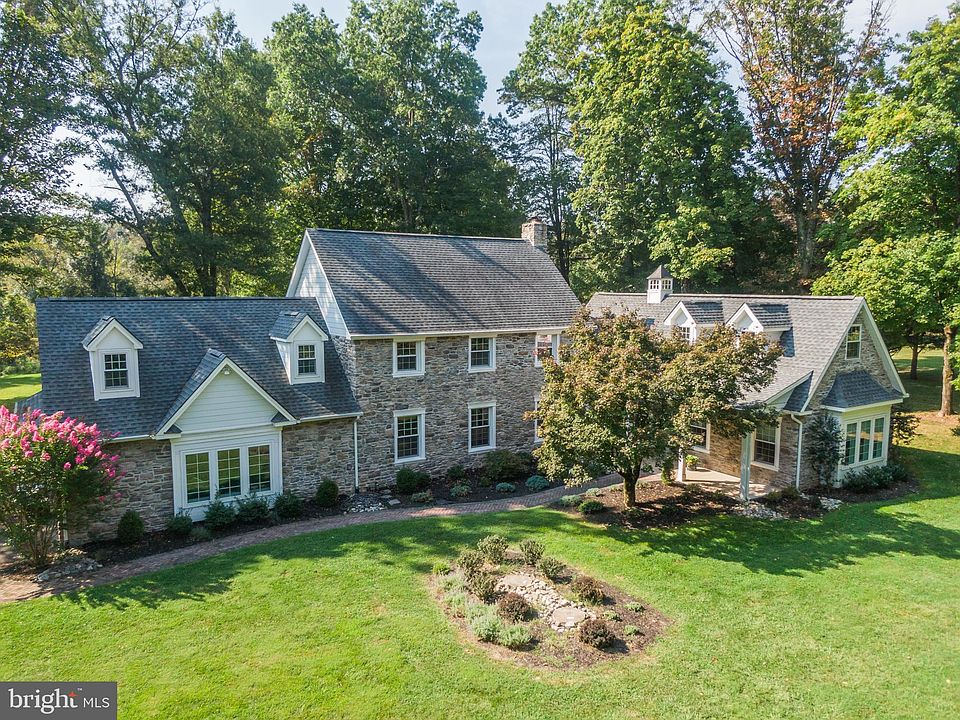Looking for a graciously elegant stone farmhouse reproduction, a thoughtfully designed floorplan including a main floor primary suite, and a gorgeously private 2.57-acre lot in the beautiful township of Upper Makefield Bucks County? Your investment and peace of mind are assured. At the top of a slow curving driveway, surrounded by simple yet sophisticated perennial landscaping, this grey stone home inspires calm from every angle. The original flat front has a seamless addition with a rocking chair front porch. Inside, the foyer is flanked by the great room to the right and the sunny open kitchen to the left. Beautiful hardwood floors are found throughout most of this home. The creatively remodeled kitchen is an open and inviting space with a large center island separating it from the spacious dining area. Sleek white cabinetry and gleaming subway tile combine with top line appliances such as a Wolfe commercial style 5 burner stove. The natural light is aided by task lighting above the gorgeous stone countertops. The neutral color palette in the home’s interior echoes the grey stone exterior beautifully. Beyond the kitchen and dining room is the laundry room with an outside door to the backyard and another door to the two-car oversized garage. There is also a handy powder room. The great room is the perfect size for entertaining and glass French doors, with inset blinds for privacy, open to the sunroom with walls of windows looking out onto the backyard. A gas fireplace with a mantle sets the tone. The family room is a wonderful addition! Box wainscoting and vaulted ceiling with ambient lighting make this the perfect room to curl up together and watch a movie. Turn off all the lights and let the ambient up-light create the mood. The primary bedroom suite can be completely closed off from the rest of the home. Off of a lovely hallway are two huge walk-in closets and a stunning bath with a shower that is integrated into the décor. The bedroom itself is plush and inviting and oh so quiet. On the second floor are two bedrooms that share a well-appointed hall bath and a remarkable bonus! There is a fourth room that would work well as a guest room or office which opens into a terrific large multi-purpose room. An exercise room, playroom, sleepover hideaway, second office, craft center – whatever use you can think of this space will provide it. Also in this room are stairs up to the completely floored attic. A full walk-up basement completes this beautiful home. Just 90 minutes to Manhattan and Philadelphia and 30 minutes to Princeton. Council Rock Schools!