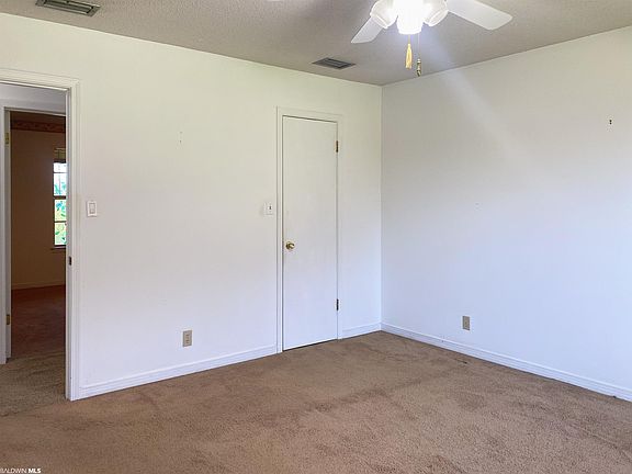 Easy to Show and Ready to Sell. This 3 bedroom 2 bath brick home sits on just under an acre in central Baldwin County. Tile flooring in the 4x8 foyer, primary bathroom and guest bathroom. Vinyl flooring in the kitchen and dining areas. Carpet in the bedrooms and livingroom. A large traditional wood burning brick fireplace with electric insert anchors the living room's vaulted ceiling. All appliances in the kitchen will convey. The 7x7 laundry room is accessed thru the garage.All utilities provided thru the City of Robertsdale. Use Showing Time to gain access to this property.