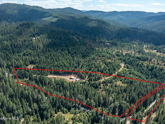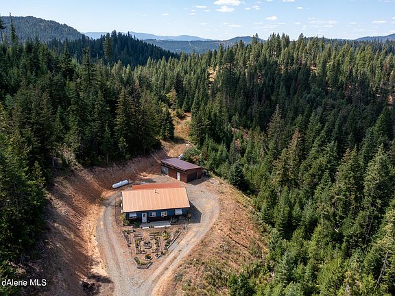 Wolf Lodge Area! 15 acres of quiet rural land less than 30 mins from CDA with a creek, beautiful mountain views, and automatic gate for privacy. An almost complete 30x40 ft. shop home with a 1-car garage, an attached 14x32 ft. carport and a 34x18 ft. out building for toys or storage needs. The house features a propane heater, propane stove and oven drawing from a 1,000-gallon tank. Water is supplied to the house from a spring on the property that has been redirected into a cistern and then pumped up to the house. Electricity, internet, and landline phone are already installed. There is a large established garden with a mix of flowers, herbs, and space for seasonal vegetables, and a chicken coop and covered run for all your feathered friends. All that's left to install is a septic system to have a fully functioning home. Fix up the house and live there or use it as a comfortable place to stay while you build your dream home on one of the numerous home sites available.