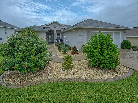 Stonecrest 55+gated golf course community with all the amenities , 4 pools, 24 hour manned security and just 2 miles from The Villages by golf cart as this is a golf cart community. You will love this Sycamore Model by Armstrong, 3 bedroom, 2 bath, split bedroom plan with open concept and a enclosed glass sunroom sitting high and overlooking the community. Spectacular layout. Tile in foyer, kitchen and bathrooms. Laminate flooring in living room/dining room. Carpet in the bedrooms. Vaulted ceilings. Tile in the sunroom. Sliding glass door off living room to the sunroom as well as sliding glass door off master bedroom. This is a one of a kind layout and oh so clean! Please watch the videos as this home will not last!
