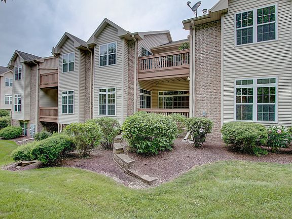 Beautiful, immaculate 2 bedroom, 2 bath lower end condo in desirable Jacobs Ridge! Lovely, serene private setting. Open floor plan features living room with gas fireplace. Hardwood floors in the kitchen & dining rooms. All appliances included (gas stove). 6-panel doors throughout. Master bedroom suite with huge walk-in closet, double sinks, soaking tub & separate shower. Main level laundry room. Clean, dry unfinished basement, plumbed for bath, great for storage or ready for your rec room ideas. Complex has a clubhouse. Pet friendly, allowing one dog or two cats. SEE ATTACHED VIDEO!!