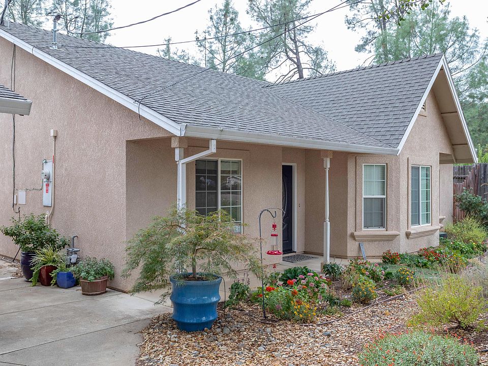 Enjoy sitting under your covered patio viewing the beautiful landscape that attracts Birds, Hummingbirds and Butterflies! A relaxing Koi pond and seasonal creek adds to the allure of the property. This 3 Bedroom 2 bath 1800sqft home features a Solar set up that costs only $225.00 a month, with no true-up at the end of the year and in just 10 short years it will be fully owned! The 3-car garage includes a charging station for your Electric Car. This home has an open floor plan to view your back yard. The Kitchen has tile counter tops, pantry, eating bar and dining area. The front room could be an extra bedroom, office, formal dining or living room. Master Bathroom has split sinks, jetted garden tub, separate shower and walk in closet!