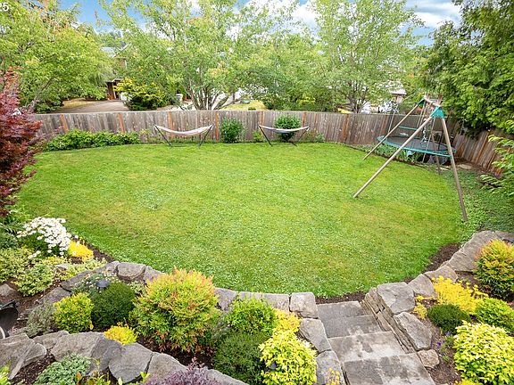 Amazing NW location in one of Bethany’s highly desirable neighborhoods—Deerfield! Situated on one of the largest lots in the community, this home features soaring ceilings in both the living room and the spacious primary suite - ample natural light! Durable laminate flooring throughout much of the home. The fully fenced backyard is a gardener/entertainer's dream featuring an expansive Trex deck, a large grassy area, mature trees, paver patio, custom rock retaining wall with steps, sprinkler system, a shed, and even a swing set and trampoline—both included! Two sliding glass doors (kitchen and family room) provide access to the outdoor space, perfect for entertaining or relaxing. The vaulted primary suite includes a walk-in closet. East facing entry provides ample morning light! The cozy family room features a gas fireplace and additional access to the backyard retreat. Conveniently located nearby THPRD Rec Center, a dog park, and Rock Creek Trail. You'll also enjoy nearby dining, shopping, and entertainment options—all while being just a short drive from Nike and the Hi-Tech corridor. Don't miss this amazing opportunity!