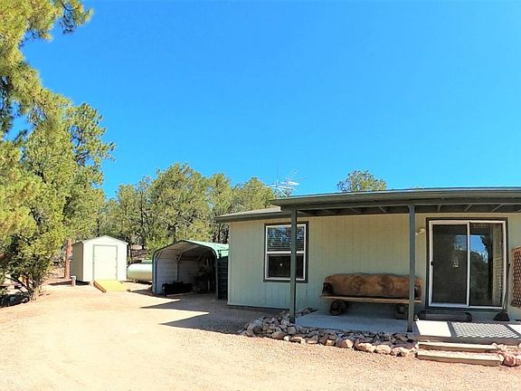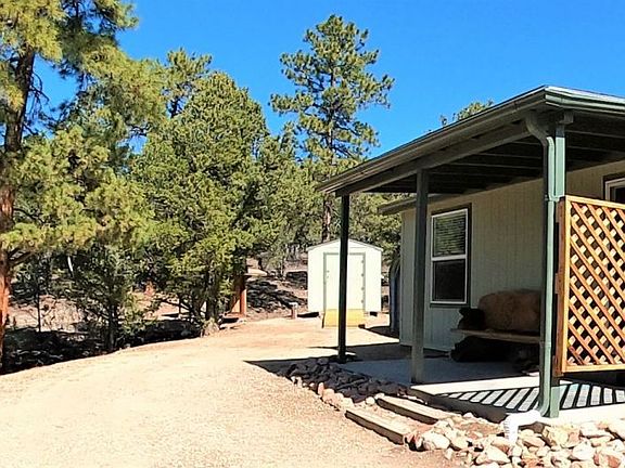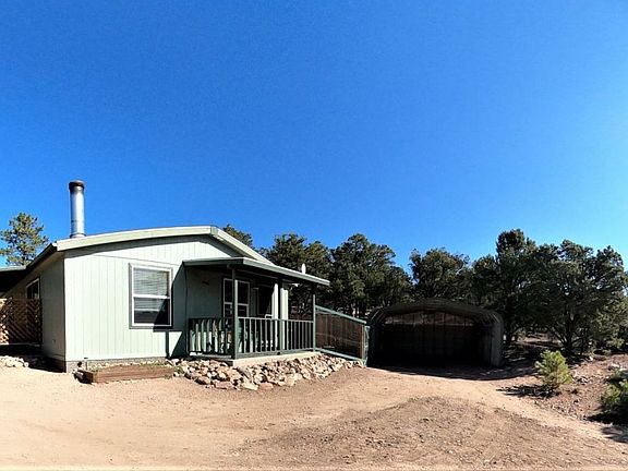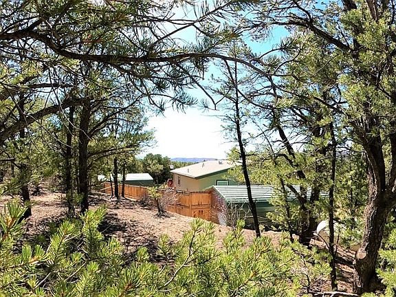 It won't take you long to appreciate the care given to this manufactured home and property, the tall trees, mountain views and several well maintained outbuildings. This 2 bedroom, 1 bath home sits nestled in the trees with peek a boo views of the Sangre de Cristos. Those views are also available from the living room sliding glass doors, or while sitting on the 2 poured concrete, covered porches. Walking inside, you'll be pleased with the open concept kitchen, dining and living room - the square footage seems much larger than imagined, and the two bedrooms, laundry and full bath are off the living room. The focal point, aside from the mountains, is the cozy fireplace. The kitchen has a full walk in pantry, and along with the kitchen cabinets you'll have plenty of storage. Speaking of storage, this property has two carports, a wood shed, and extra storage shed. Avid gardeners, the Sellers have fenced the side yard, installed raised growing beds, and installed a rain barrel catchment system that stays with the home. We invite you to view this beautiful acreage and home to decide for yourself! 12th Trail road improvements completed 5/6/21. 24-Hour Notice Required for Showings.