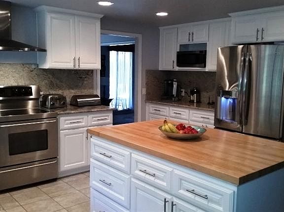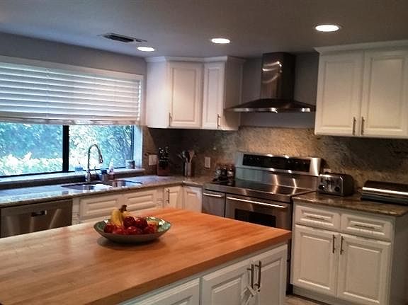 Beautiful Cape Cod with Chef's dream kitchen! Custom front landscaping by Joe Parker, accented by an exposed aggregate walkway, offers an inviting entrance to the spacious, fully remodeled interior. Kitchen features a 40 Kenmore Elite 5-burner stove/oven with professional SS hood, custom butcher block center island, KHL custom cabinets, granite counter tops and full granite backsplash. Fresh Designer paint, new carpet, upgraded lighting and new tile flooring add luxury and value to this lovely home. Baths show off custom KHL cabinets as well as new tile, sinks and fixtures. The Entertainment center in the living room is a KHL special feature. Backyard is a Joe Parker-designed oasis, with mature trees offering a shady retreat and a sunny, sparkling pool for family fun.