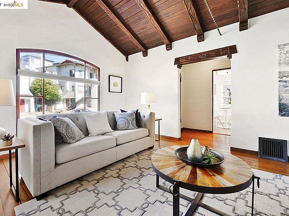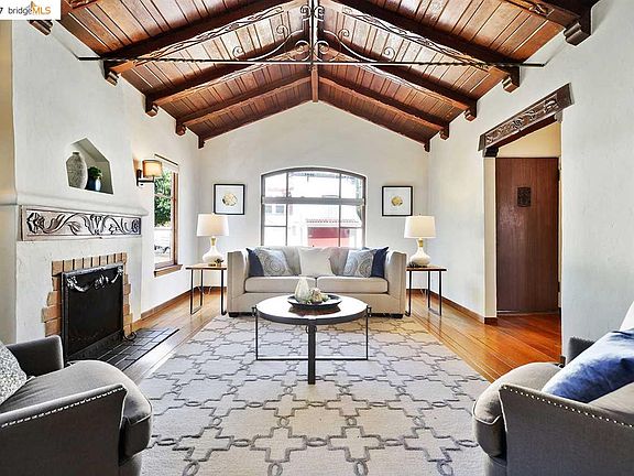 Stunning Oakmore Spanish Mediterranean Beauty. Soaring ceilings with wrought iron details, hand carved wood beams, hardwood floors, picture window and an original fireplace are found in the gracious living and dining rooms. A bright eat-in kitchen includes granite counters and high end stainless steel appliances. The two bedrooms located on the main floor feature hardwood floors, moldings and overlook the backyard. A large bathroom is located close by. Downstairs to the sunny third bedroom and a bonus room ideal for a home office. Another full bathroom is also located on this level. Lovely yard with lush lawn, lemon tree, bamboo, and bougainvillea. Minutes to local Rocky's Market, Park Blvd shops, restaurants, schools & fantastic transportation options!